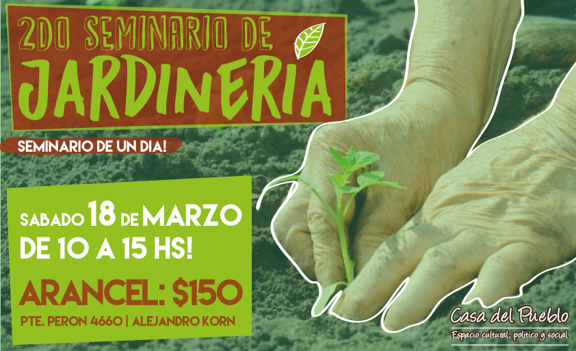 Mañana sábado de 10 a 15 se llevará a cabo un seminario de jardinería en el espacio Casa del Pueblo, en Presidente Perón 4660, en Alejandro Korn.