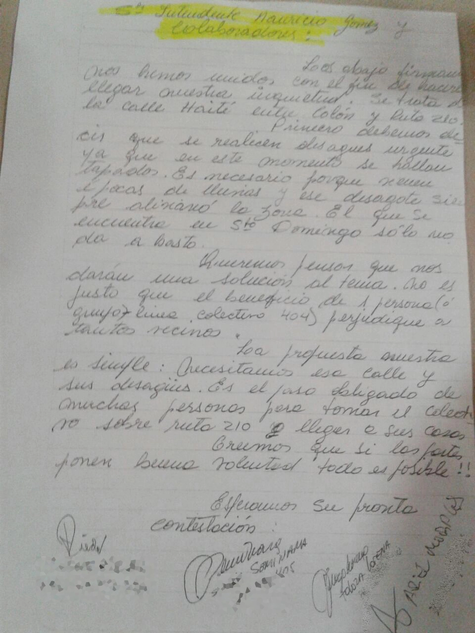 Aunque la situación es similar en distintos puntos del distrito, particularmente la queja fue elevada por vecinos que viven en Haití, entre Colón y Ruta 210.