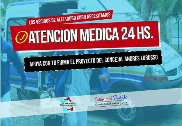 Vecinos e instituciones planean juntar 5000 firmas para que se apruebe un proyecto del concejal Andrés Lorusso que busca que Alejandro Korn tenga atención medica las 24 hs y una sede para emergencias “para que la ambulancia llegue a tiempo”. La secretaria de Salud dice que ya hay un plan en marcha para eso.